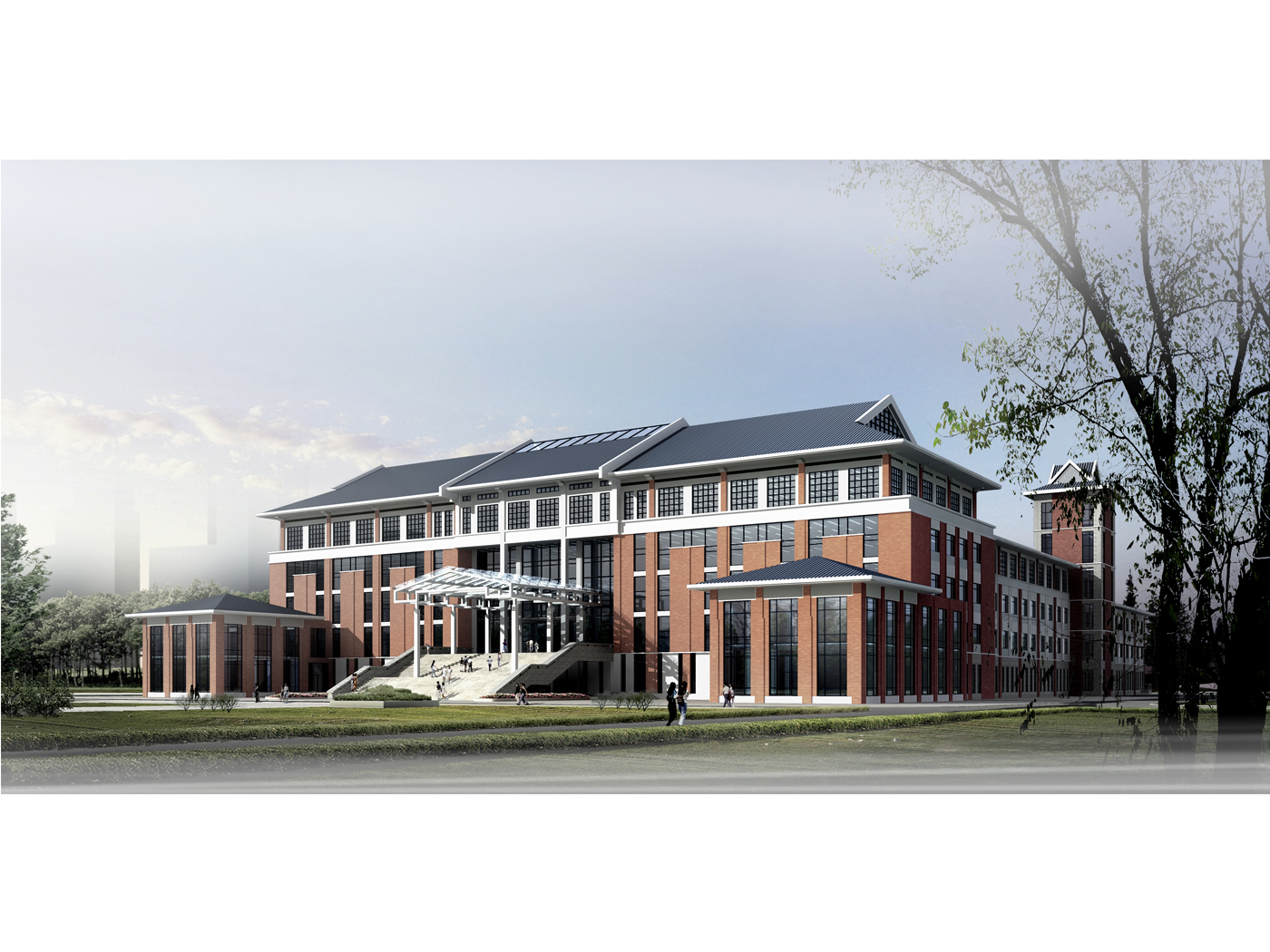 從基地環(huán)境出發(fā)進行設(shè)計,大學(xué)標志性建筑是主體,建筑群之中心;圖書館建筑面積雖大,但仍是建筑群中之配角,不宜做高;從功能適用、經(jīng)濟著手進行規(guī)劃設(shè)計,真正體現(xiàn)“以人為本、功能第一、方便使用”的原則;以自然采光,自然通風(fēng)為主,降低造價,運行經(jīng)濟;最大限度的使主要用房朝向東面、南面和西面,爭取最大的享受“寶貴的陽光”,北面開窗面積減少;采用大柱網(wǎng)、大空間的設(shè)計概念,不同的功能塊采用不同的結(jié)構(gòu)模數(shù),把均質(zhì)空間(傳統(tǒng)的藏書、閱覽空間)與大跨度及高度大的空間(報告廳、展覽廳等)分開布置,使結(jié)構(gòu)更加經(jīng)濟、合理;報告廳獨立于主樓布置,既可單獨出入,又與主樓相通,做到又分又合,對二者都有利。